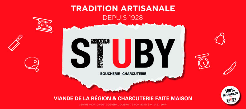 Chez Stuby, boucherie familiale de référence pour tous les gourmets de Vevey et de la Riviera. Depuis 1928, 4 générations familiales se succèdent pour partager leur passion d’artisans bouchers et charcutiers, et le bon goût des produits régionaux de qualité.